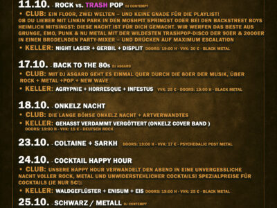 OPEN: FR / SA 21 H. Bei Konzert Flyer beachten