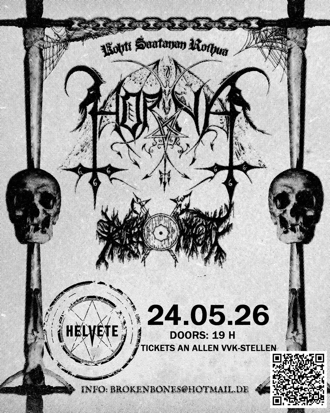 Macht euch bereit für eine Nacht puren Hasses und finsterer Riten! Die finnischen Black Metal-Veteranen HORNA fallen ins Helvete ein, um die Bühne in Schutt und Asche zu legen.