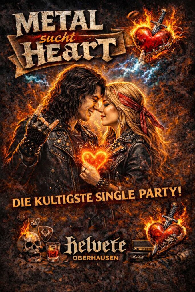 Hier treffen einsame Herzen auf double bass, fliegende Haare auf flammende Leidenschaft – und vielleicht findest du zwischen Moshpit und Metal-Ballade deine andere Hälfte aus Stahl.