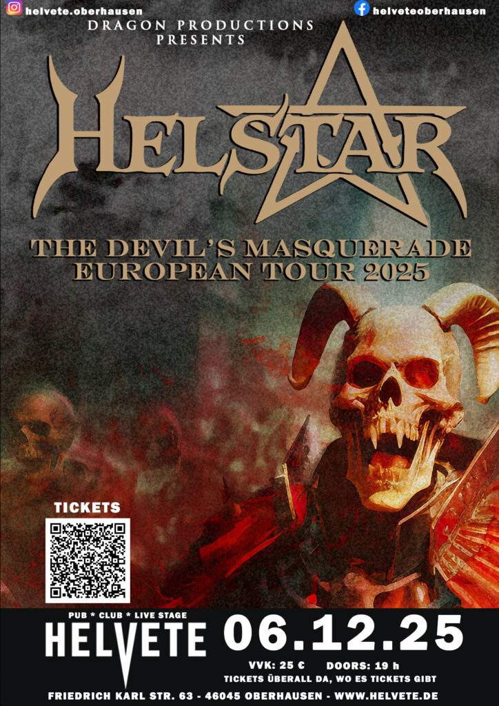 Die US-Metal-Legenden HELSTAR kommen im Rahmen ihrer Devil’s Masquerade European Tour nach Oberhausen – und machen am 6. Dezember 2025 Halt im HELVETE!