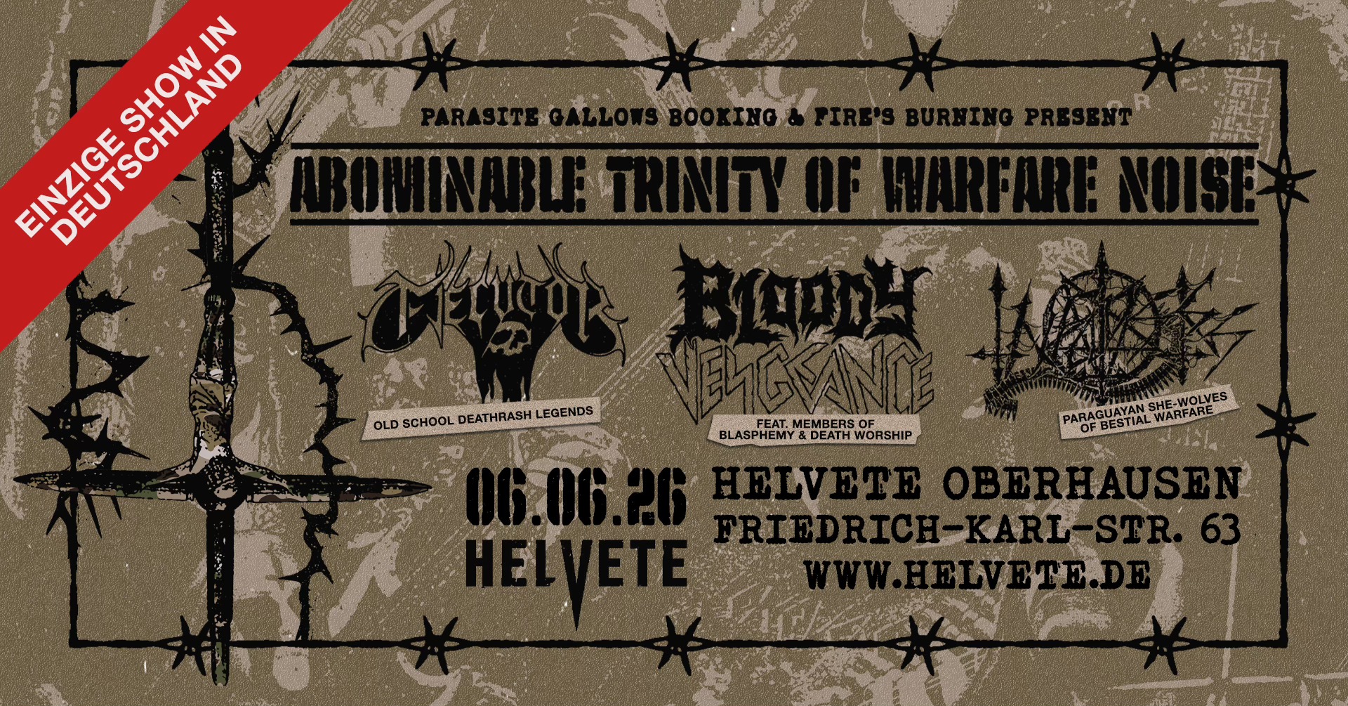 PARASITE GALLOWS BOOKING & FIRES BURNING present you THE HORROR… THE HORROR… THE ABOMINABLE TRINITY OF WARFARE NOISE!